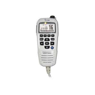 Micrófono comando color blanco y pantalla en fondo blanco para serie IC-M510, IC-M424G e IC-M605