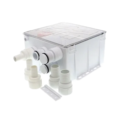 Sistema de desagüe para duchas con bomba de achique de 800 galones por hora a 24 Volts de corriente directa e interruptor de flotación